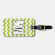 Modern Lime Green Glitter Chevron Zig Zag Stripe Fabric Print Pattern Monogram Initial Luggage Tag