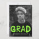 Urban, trendy photo graduation announcements featuring the graduate's photo with "Grad" in a lime green, spray paint typography style. Personalise the front by adding the graduate's name, school name, and graduation year. The modern graduation announcement reverses to feature a lime green spray paint design.