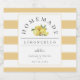 Rustic watercolor lemons and leaves, modern limoncello beverage label. Labels feature, chic rustic yellow and white stripe pattern background.