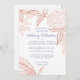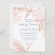 Modern Line Art Floral Peony Leaf Navy Orange Invitation