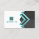 Modern visiting card with social media icons and urls -  a place for your  QR code on the front , all in  charcoal and  aqua - stunning geometric lines
