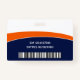 Represent your business in style by supplying staff with with modern and professional identification badges. Uploading your company logo, an employee photo, and your security barcode is easy and quick. Using the templates for your company name, employee name and job title, employee ID#, and expiration date is simple and straightforward. The navy blue, orange and white design is classic yet trendy. This name badge provides security for your company and staff, while at the same time presenting corporate branding with a stylish appearance.
