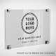Modern clear acrylic sign for your business featuring your company logo, business name and an additional line of text for your tagline, slogan, year established, website, etc., in simple typography.