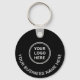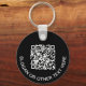Modern promotional keychain for your business or organisation. Add your logo and QR code and a line of customised text on each side, such as your company name, slogan, thank you, etc., in simple white typography.