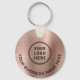 Modern simple promotional keychain for your business or organisation with a brushed rose gold faux metal background. Add your logo and QR code and a line of customised text on each side, such as your company name, slogan, thank you, etc.