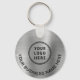 Modern and simple promotional keychain for your business or organisation with a brushed silver faux metallic background. Add your logo and QR code and a line of customised text on each side, such as your company name, slogan, thank you, etc.