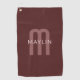 Modern Looking Monogrammed Name | Maroon Red Golf Towel