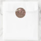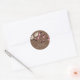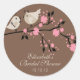 Cute love birds Bridal Shower round sticker featuring bride & groom birds sitting on a branch with pink flowers set on a chocolate brown background. Great for bridal shower favour tags & envelope seals! Customise with your bridal shower information and you're all set to go! Matching invitations and postage stamps available in our shop www.celebrateitinvites.com.