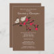 Start off your event off right with our Trendy & Modern Bridal shower invitation featuring a cute pair of bride & groom birds in love sitting on a red floral branch set on a brown background . Just customise our beautiful bird couples bridal shower invitation with your wedding information and you're all set to go. ©JW Illustrations