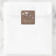 Cute love birds Thank You Bridal Shower square sticker featuring bride & groom birds sitting on a branch with lavender lilac flowers set on a chocolate brown background. Great for bridal shower favour tags & envelope seals! Customise with your bridal shower information and you're all set to go! Matching invitations and postage stamps available in our shop www.celebrateitinvites.com.