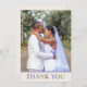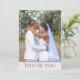 Stylish flat wedding thank you card done in ivory, with colourful graphic text reading THANK YOU, under a custom wedding picture. Personalise the photo and text on the back, to suit your wedding needs. Matching products are available.