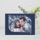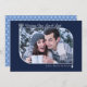 Theme Parties' modern Hanukkah photo card design features a light blue backdrop for your favourite holiday photo set in a modern geometric rectangle shape with two rounded corners. The reverse side is a Star of David pattern in white and navy blue. Change "Wish You Love & Light" to your favourite Hanukkah greeting. #Hanukkah #Holidays #HanukkahCards