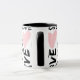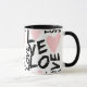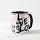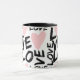 A modern take on love, featuring a scribbled black font and hand-drawn pale pink hearts, reminiscent of the famous "LOVE" sculpture from the 1970's.