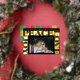 Modern LOVE PEACE JOY one photo onyx frame Foil Holiday Card