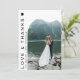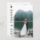 Introducing our Simple Love and Thanks Photo White Thank You Card, an emblem of gratitude designed to transcend words! This is more than just a card; it's a bridge that connects hearts, expressing your gratitude in a harmoniously simple yet powerful way. What sets our thank you card apart is the personal touch it carries. The front boasts a space for a photo, a memoir of a shared moment that truly captures the essence of your appreciation. It's a keepsake that transcends beyond simple words of thanks, fusing heartfelt emotions with a precious memory to create a truly personalised expression of gratitude.