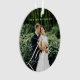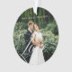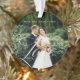 Special personalised newlywed wedding photo ornament to display your own special wedding photo memory. Our design features a full photo design with your last name displayed along the top. The word "Love" is designed in a beautiful handwritten white script style that is overlaid over the wedding photo. The back and front are the same.