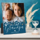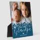 Personalised grandfather photo plaque featuring a precious family photo, a modern blue heart design, the saying "we love you grandpa", and the childrens names.