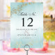 Modern Luxe Gold Flecks Teal Mist Wedding Table Number