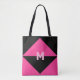 Modern magenta and black triangles Tote Bag. M letter can be personalised.