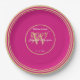 Modern Magenta + Gold Monogram Chic Wedding Paper Plate