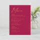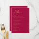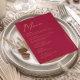 Looking for a wedding table menu? Introducing our stunning Modern Magenta Gold Typography Wedding Table Menu! This simple wedding menu exudes timeless sophistication with its elegant modern typography and sleek, minimalist design. It's the perfect choice for couples seeking understated yet stylish wedding invitations that capture the essence of an elegant modern wedding theme.