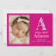 Modern Magenta Monogram Birth Stats Photo Announcement