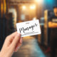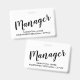 A simple stylish modern managers ID badge featuring a script typography title and your name and company name or region. Simple, modern, stylish. For management staff for meetings, events, and conventions.