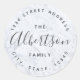 Custom-designed return address labels featuring modern hand calligraphy on marble design.