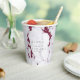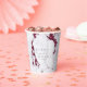 An abstract background reminiscent of glitter-veined marble in shades of burgundy through soft mauve and white is the backdrop for elegant script text and modern design layouts in the pieces of this beautiful wedding suite. The wedding paper cup shown here features centred text bordered by elegant marble. Easily add your own names and wedding date using the provided template. Search ID816 to see other pieces and colour choices for this set.