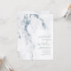 An abstract background reminiscent of glitter-veined marble in shades of dusty blue through steel blue and white is the backdrop for elegant script text and modern design layouts in the pieces of this beautiful wedding suite. The invitation shown here features a right-aligned text with an elegant marble border. Search ID816 to see other pieces and color choices for this set.