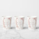 An abstract background reminiscent of glitter-veined marble in shades of rose gold is the backdrop for elegant script text and modern design layouts in the pieces of this beautiful wedding suite. The wedding paper cup shown here features centred text bordered by elegant marble. Easily add your own names and wedding date using the provided template. Search ID816 to see other pieces and colour choices for this set.
