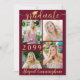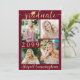 Modern, simple graduation announcement featuring faux metallic gold calligraphy script typography and graduation cap and personalised with 4 photos on the front (1 on the back) against an editable maroon burgundy background colour or select a styled graphics background. The class year is editable as well. The back side features a full-bleed photo and your custom text for details about your graduate. ASSISTANCE: For help with design modification/personalisation, transferring the design to another product or if you would like coordinating items, contact the designer BEFORE ORDERING via Zazzle Chat or makeitaboutyoustore@gmail.com.