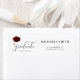 Simple and modern script graduation return address label to add to your graduate stationery announcement letters. The elegant script with the word graduate is accompanied with a serif font that you can edit to add your graduate's name and address, as well as the class year. To add a touch of colour, there is an illustration of a maroon and gold graduation cap. Illustrated and designed by Patricia Alvarez.