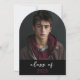 Celebrate your graduate in style with this modern and fun arch-shaped graduation announcement! Featuring a sleek black and white palette with bold pops of maroon burgundy, this minimal design adds just the right amount of personality to the big day. The back showcases your graduate’s favourite photo, making it a perfect keepsake to share with friends and family. Simple, stylish, and full of joy—just like your grad! Created by Simply Farmhouse Press.