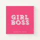 A customisable notebook featuring white "girl boss" marquee typography with hot pink background. Personalise by adding your own name or a short phrase.