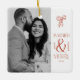 Modern Married and Merry Newlywed Bow Christmas Ceramic Ornament