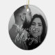 Modern Married and Merry Newlywed Script Christmas Ceramic Tree Decoration