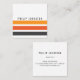 Modern masculine grey and orange stripes white square business card