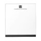 Notepad featuring your monogram initial on a black or custom colour square and the name below in a masculine font. At the bottom is a black border. All colours are customisable.