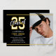 Masculine graduation party invitations featuring a stylish black background that can be changed to fit your personal taste or match your school colours, with a bold real foil gold "25" representing the class year and symbolising the start of a new chapter in life. Plus sleek gold lines running across the top and bottom add a touch of modernity, giving them a sleek and sophisticated look that is sure to catch the eye of anyone who receives them.