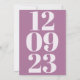 A contemporary style to Invite your guests to save your wedding date with this modern typographical design, with your wedding date as a subtle background in numeric form filling the page from top to bottom in pale mauve which is repeated on the other side on a darker mauve background. On the front, small simplistic dark mauve typography is overlaid on top of the numbers with your details. The text is easily personalised, including the background numbers which will change simultaneously on both sides. You can also change text and background colours to better suit your wedding colour scheme if you wish via the customise further option. If you need any help with this please message me.