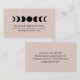 Elegant business card featuring a simple and modern design with moon phases over a mauve background. This business card design is great for a massage therapist, health and wellness business, holistic services or alternative medicine.