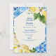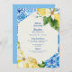 Bridal Shower Invitation. Blue Mediterranean Lemons. Modern Font. Modern design. Blue and Yellow.