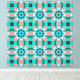 This design features a mesmerizing, intricate geometric lattice pattern reminiscent of Moroccan tiles, modern kaleidoscopes, or Mediterranean mosaics. The vibrant color palette combines refreshing Aqua/Teal, Coral Pink/Salmon, deep Navy Blue/Black, and touches of rich Red, creating a bold, lively, and sophisticated look.