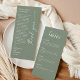 This elegant double-sided wedding menu template features a timeless minimalist design perfect for modern and classic celebrations alike. Sized at 4 x 9.25 inches, the front showcases your dinner menu with refined typography and a clean layout, while the back includes a heartfelt thank-you message to family and friends, accented with a graceful script detail. Ideal for placing at each guest’s table setting, this menu adds a thoughtful and sophisticated finishing touch to your reception décor.