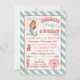 This little Mermaid is inviting you to her birthday party with modern typography, sunburst, shells and a striped background. Great for any aged gal that would love an under the sea theme. Perfect for pool parties, aquarium, or beach parties! Hand drawn illustration by McBooboo.