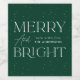 Modern Christmas wine label featuring "Merry and Bright" in white lettering and green background with subtle white dots. Personalise the green holiday wine label with your custom greeting and family name in white lettering.