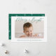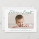 Cute, modern holiday photo card featuring the phrase "Merry & Bright" in a green hand-lettered script. Your horizontal photo is displayed with a white rough edge border. Personalise the front of the card by adding a custom greeting and your family name. The card reverses to display a green background with a white sparkling star pattern.
