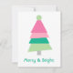 Modern Merry and Bright Minimalist Pink Green Tree Holiday Card