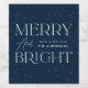 Modern Christmas wine label featuring "Merry and Bright" in white lettering and navy background with subtle white dots. Personalize the navy holiday wine label with your custom greeting and family name in white lettering.